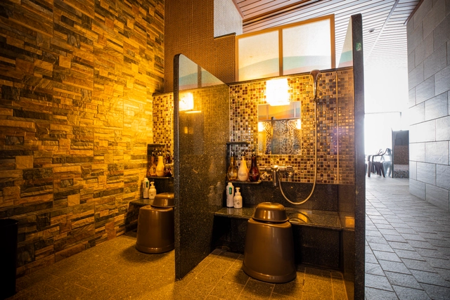 - 内湯、壺風呂、露天風呂、うたせ湯、ホットベンチ…。さまざまなバリエーションに加え、周囲に高い建物がないので、眺望も抜群です。露天風呂スペースも広く、休憩用のイスのほかに、ベンチも設置。広い空の下、ゆっくりととのってください。