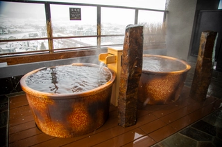 露天風呂からは富良野市内が一望、内湯からは十勝岳連峰の雄大な景色をご覧いただけます。