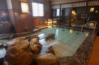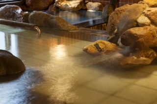 - 2Fの大浴場でありながら、レイアウトを工夫し、内湯でも日中は陽光を、露天風呂も外気を感じることができます。浴室内のレイアウト、照明などの意匠、温泉情緒溢れるダイナミックな石組みは、ドーミーイン各棟それぞれのお風呂づくりを支える、通称“大工さんチーム”のこだわり満載で、石組みの湯口からの流れは、ドーミーイン自慢です。思いっきりくつろぐときには、内湯の寝湯で瞑想してみてはいかがでしょうか。