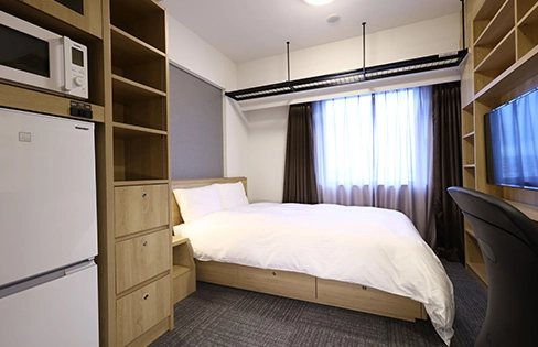 ポケットコイルマットレスといえばシモンズ、といわれる眠りを支える品質を全室に。羽毛布団、そしてオリジナルの立体枕でお休みください。お部屋タイプは、シングル、ダブル、2種類のツイン、キング、クイーン、ユニバーサルルームに加え、電子レンジや2ドア冷蔵庫を設えた“住む仕様”のレジデンシャルルームをご用意しています。