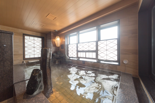 13F最上階の男女別天然温泉大浴場「南部の湯」は、内湯と露天どちらにも、地下800メートルから汲み上げの自家源泉を使用しております。