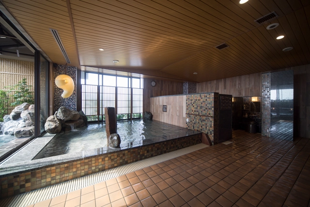 最上階11Fに、男女別天然温泉大浴場「八雲の湯」。内湯は、出雲大社の麓より運び入れる天然温泉。つるつるな入浴感で、肌がすべすべになる効果も期待できます。