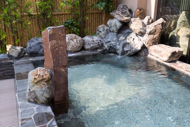 - 内湯(天然温泉)、露天風呂、壷湯、水風呂、高温サウナ(TV付)