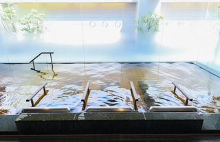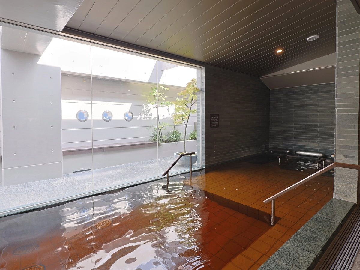 最上階14Fの男女別天然温泉大浴場「加賀の湧泉」は、モダンのテイスト。大浴場は地下1200メートルから汲み上げたナトリウム塩化物泉(弱アルカリ性低張性高温泉)で、ツルっとした手触りが特徴です。