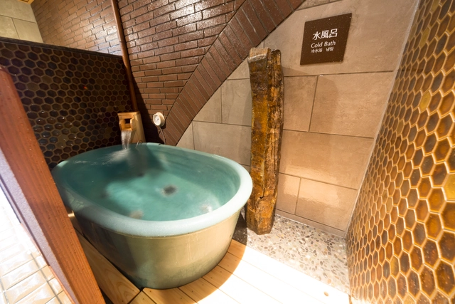 サウナを出てすぐ前に、陶器の一人用水風呂があり、汗を水で流して、そのままザブーンっとお入りください。