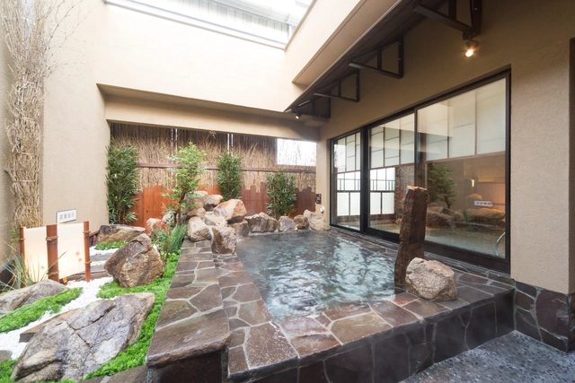 超軟水を使用したお風呂はお肌への刺激が少なく、しっとりとした入浴感をお楽しみいただけます。 湯温度は、内湯で40~42℃、露天風呂で41〜43℃に設定(季節によって変わります)。