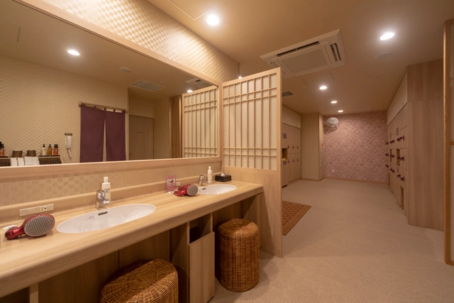 B1階でも外気を感じる男女別サウナ付大浴場「春日の湯」は、ドーミーインの中でもトップクラスの広さ。男女それぞれの内湯は、あつ湯とぬる湯をお楽しみいただけます。男性サウナは高温ドライ、女性サウナはミストを設置。