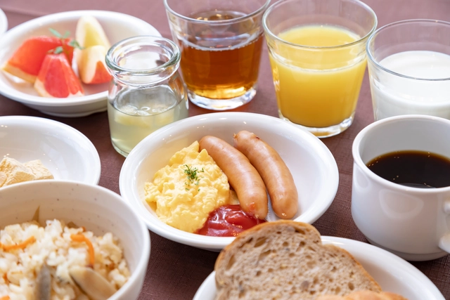 朝食は、全国のドーミーインチェーン共通の和洋バイキング、小鉢横丁と出来たての卵料理に加え、地域ごとの特色を出した「ご当地逸品料理」をご提供。温かいものは温かく、冷たいものは冷たく。いつも美味しそうに見えるように…。そんな気持ちで準備してお待ちしています。