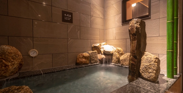 - 内風呂、岩風呂、水風呂、高温サウナ