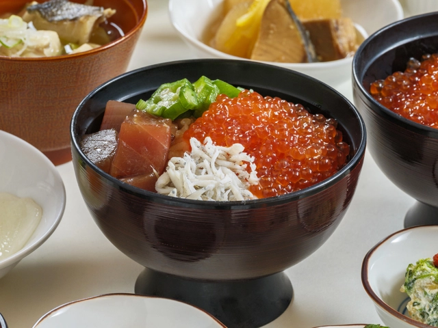 当館は、「お好み海鮮丼」と「牛鍋」をご用意。