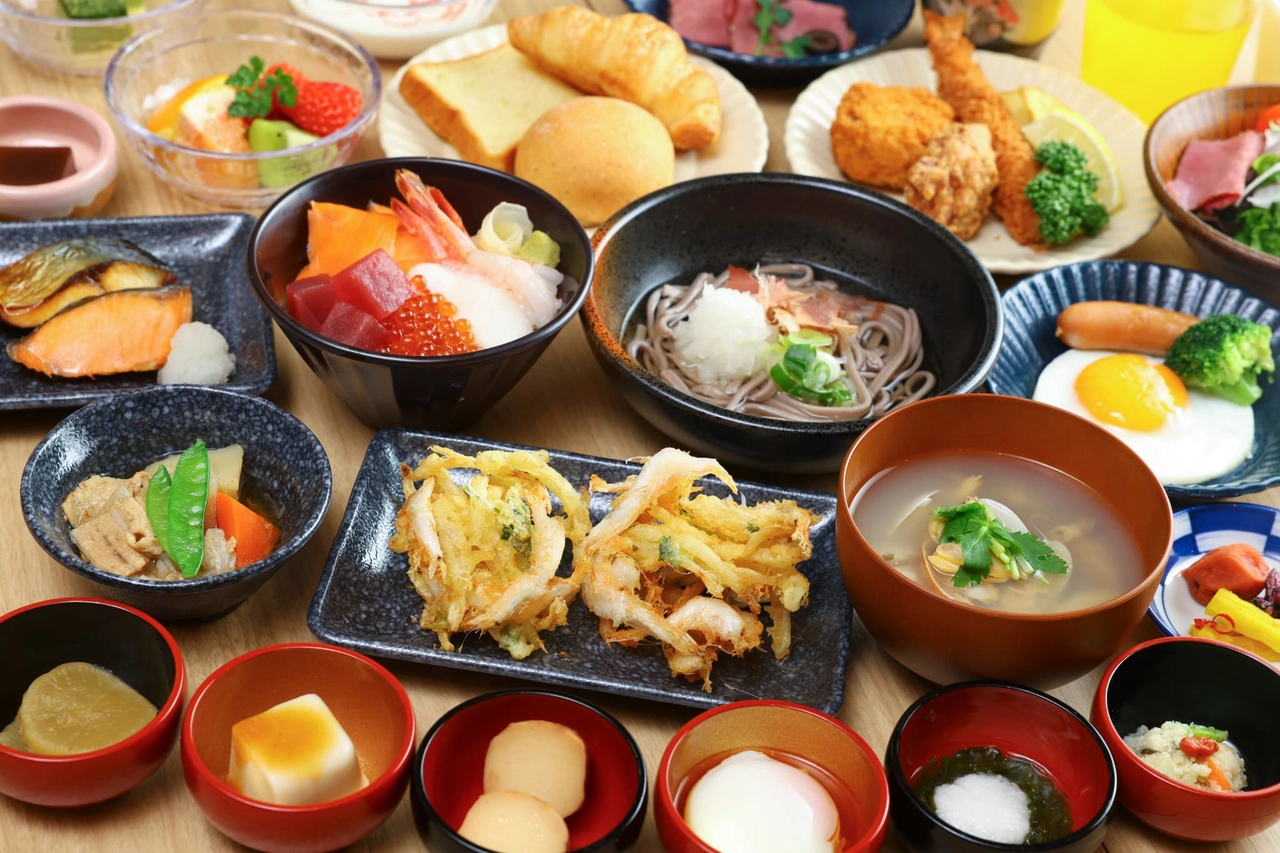 朝食は、全国のドーミーインチェーン共通の和洋バイキング、小鉢横丁と出来たての卵料理に加え、地域ごとの特色を出した 「ご当地逸品料理」をご提供。 温かいものは温かく、冷たいものは冷たく。