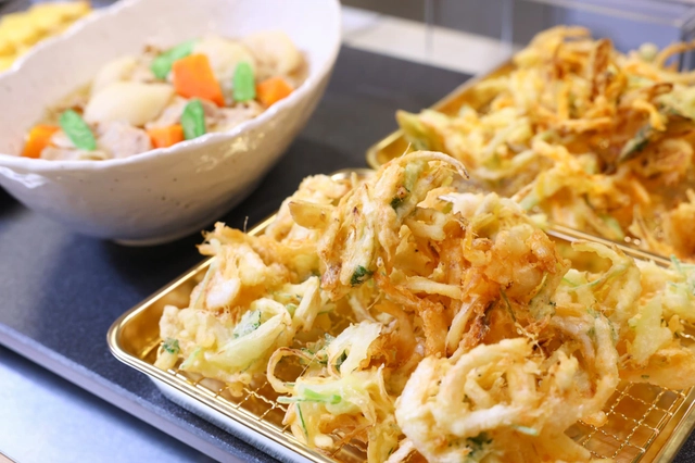 揚げたてでご用意する「季節のかき揚げ&白エビのかき揚げ」と一緒にお召し上がりください!
