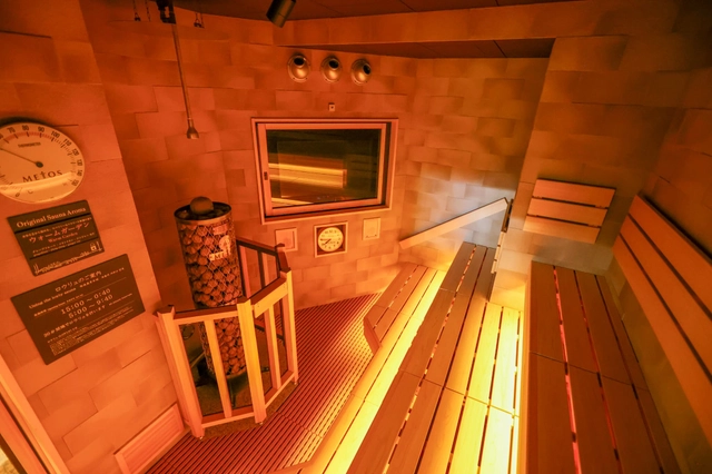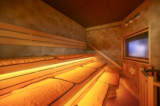 - TV付きの高温ドライサウナでは20分毎にオートロウリュを体験いただけます。アロマオイルも取り入れており、香りに癒されてリフレッシュできる空間です。