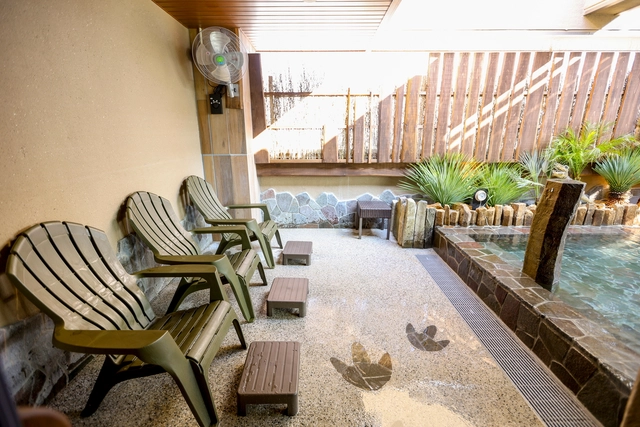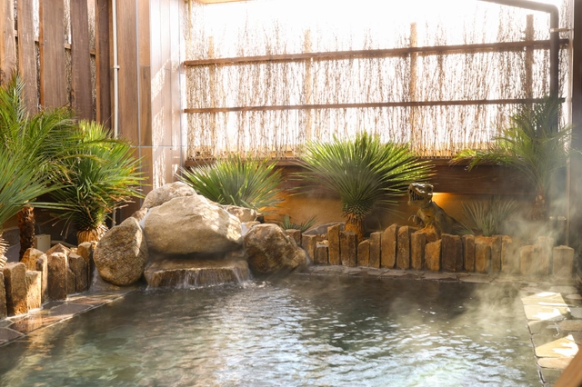 夜空を一望できる吹き抜けがある露天風呂、外気浴をおたのしみいただけます。