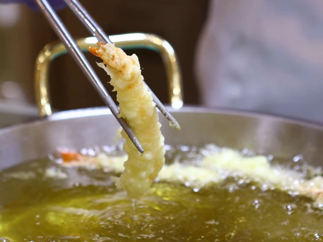 海老や加賀野菜などの“季節の揚げたて天ぷら”をスタッフが揚げたてでご用意いたします。