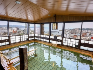 - 広い開口部からは日中は明るい陽光が注ぎこみ、湯をきらきらと照らし、また水面に反射した光が天井にゆらぎます。光を見つめながら身体をあたため、露天風呂へ…。天気が良い日には露天風呂から眺める松江宍道湖の夕暮れが絶景です。露天風呂、2つの壺湯で、じっくりお寛ぎください。