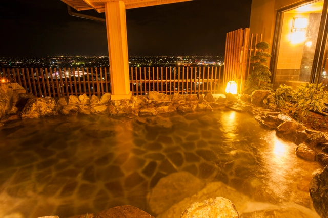 - 天然温泉の内湯と、露天風呂、ともに素晴らしい眺望。