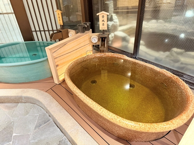 地下1,200mから湧き出す自家源泉、豊富な浴槽、