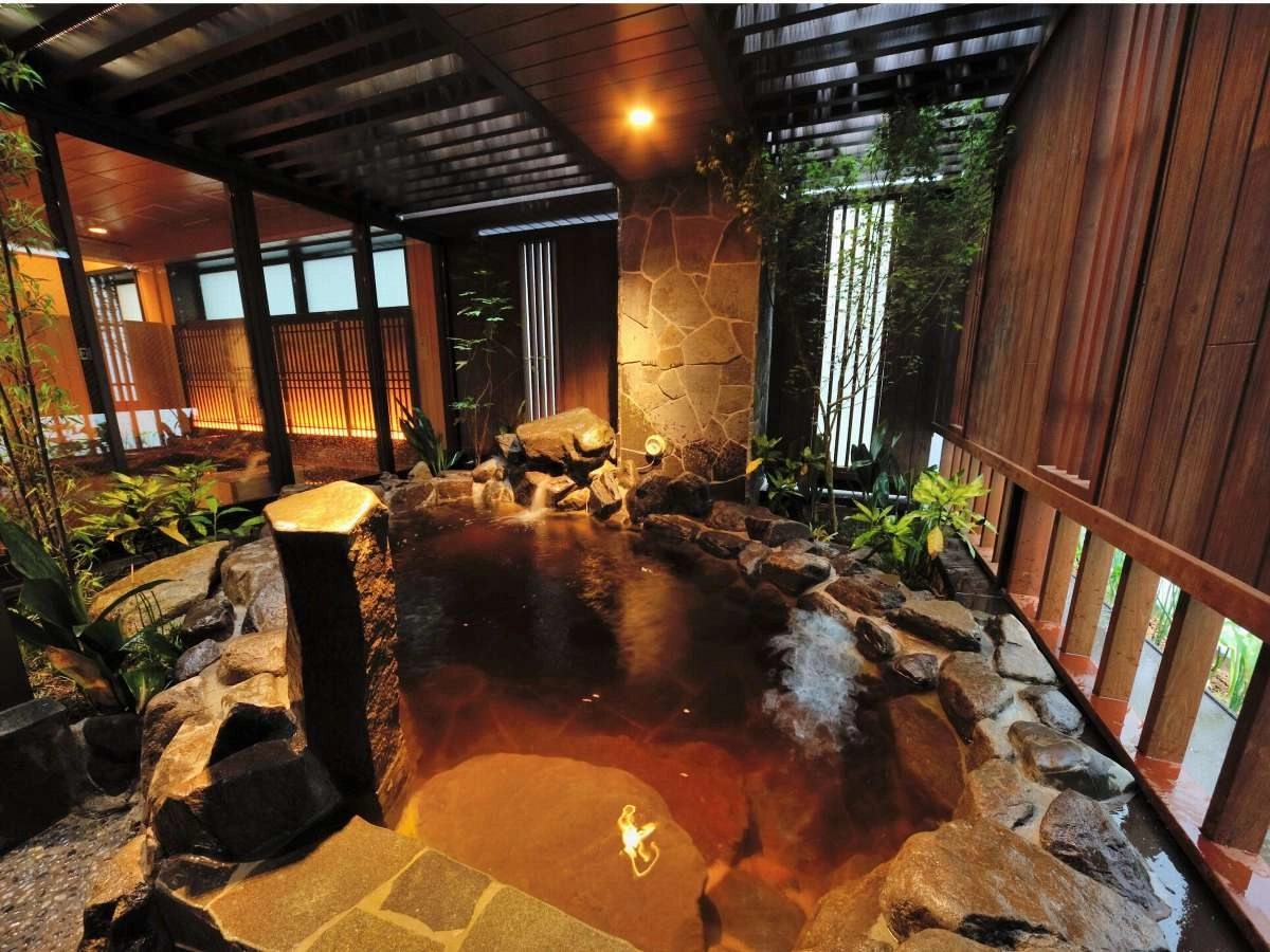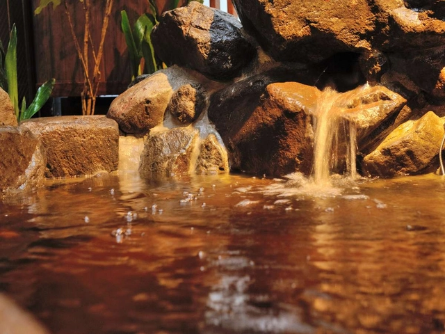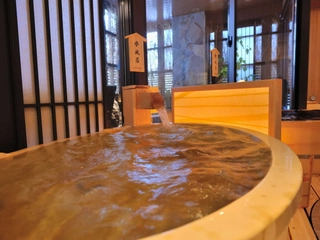2Fの男女別大浴場「剱の湯」は、地下1200メートルから汲み上げる天然温泉。茶褐色でトロっとした肌触りの泉質が特徴的で、身体の芯から温まるとご好評です。