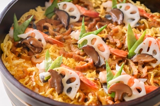 当館は、岡山の郷土料理「岡山ばら寿司」と「鰆(さわら)のたたき」。