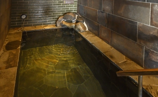 - 広い開口部からは日中は明るい陽光が注ぎこみ、湯をきらきらと照らし、また水面に反射した光が天井にゆらぎます。光を見つめながら身体をあたため、露天風呂へ…。