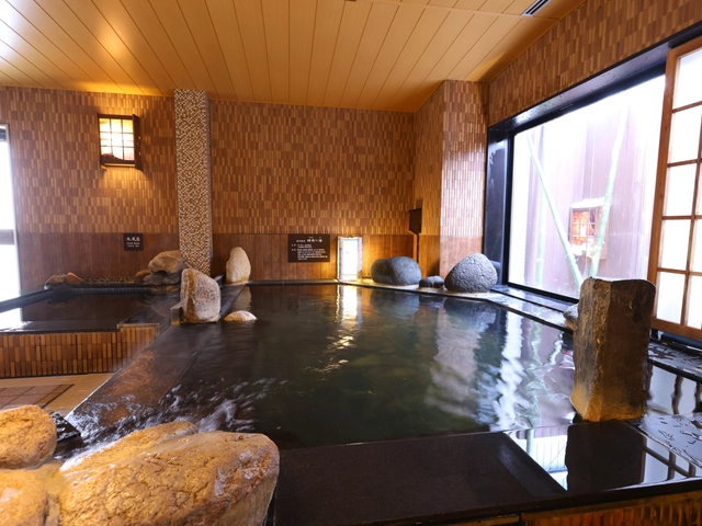 - 周りに遮る建物がなく、露天風呂では、天気が良ければ太平洋が望め、元気なカモメが上空を舞う姿も。また、豪快に岩を組み上げた内湯の湯口や露天風呂は、ドーミーインのこだわりのひとつ。浴室内のレイアウト、照明などの意匠、温泉情緒溢れる石組みは、ドーミーイン各棟それぞれのお風呂づくりを支える、通称“大工さんチーム”のこだわり満載です。