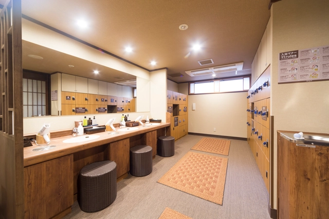 - 内湯、外気浴、高温サウナ(男性のみ)、水風呂(男性のみ)、檜風呂(男性のみ)、高見浴(男性のみ)、 スチームサウナ(源泉蒸し風呂・女性のみ)、壺風呂(女性のみ)