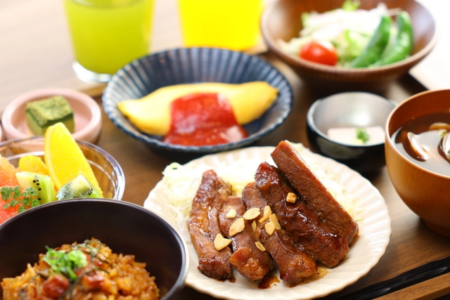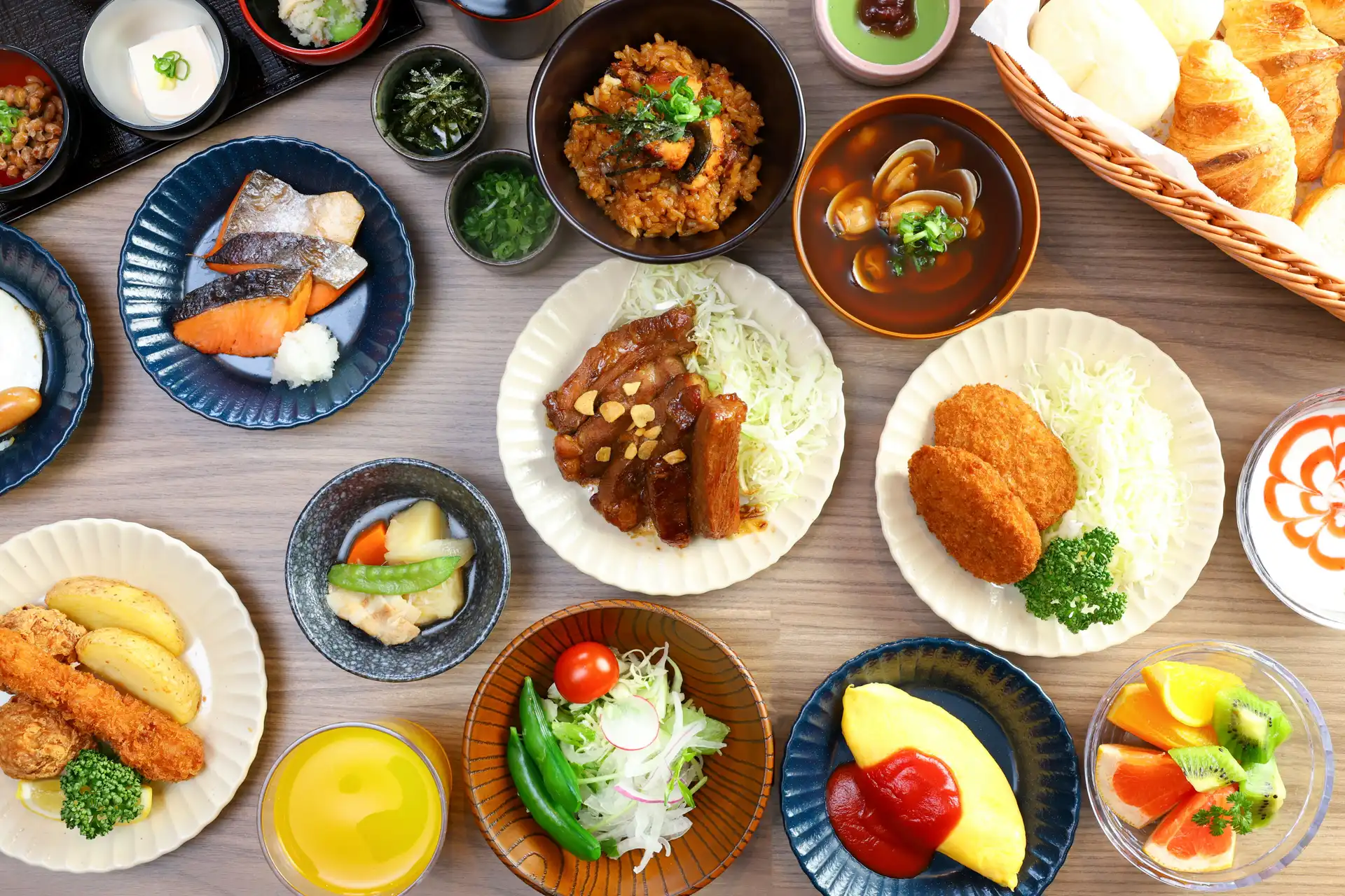 朝食は、全国のドーミーインチェーン共通の和洋バイキングと小鉢横丁に加え、地域ごとの特色を出した「ご当地逸品料理」をご提供。