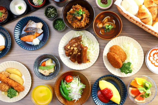 朝食は、全国のドーミーインチェーン共通の和洋バイキング、小鉢横丁と出来たての卵料理に加え、地域ごとの特色を出した「ご当地逸品料理」をご提供。