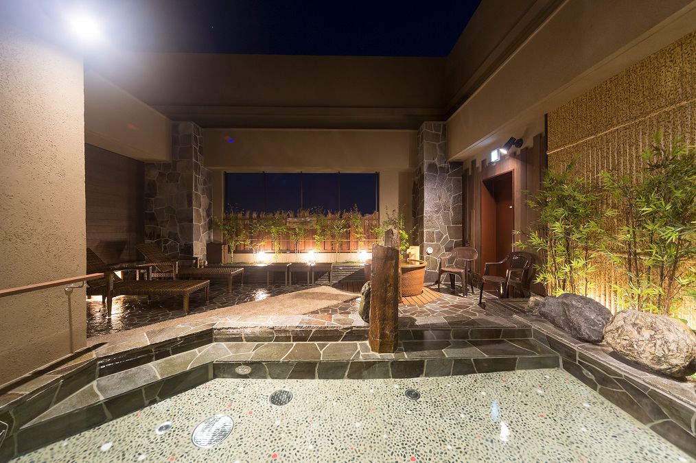 最高のロケーションに位置し夜景を一望できる大浴場。13階屋上にある眺望に優れた露天風呂は、それぞれに趣の異なる4種類の湯船があり、湯けむりの中でお愉しみいただけます。この時期だけのクリスマスイルミネーションも必見です。