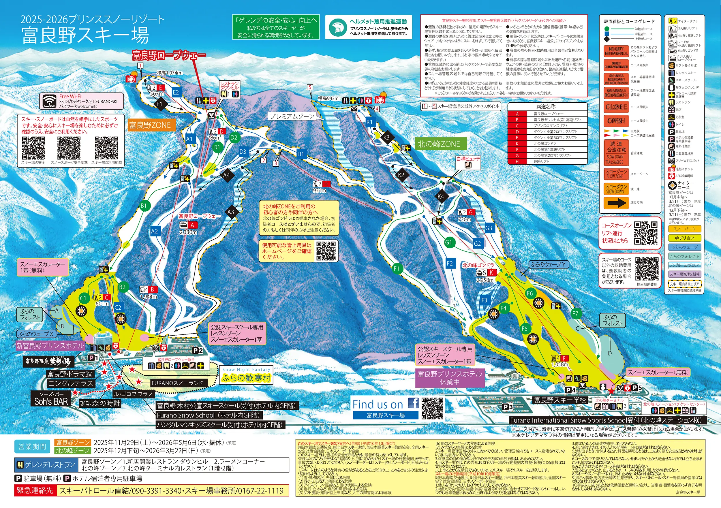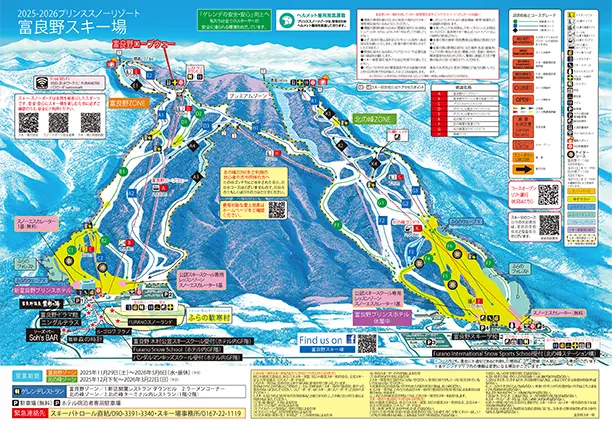 北の峰と富良野の2エリアからなる全28コースを誇り、乾いた良質なパウダースノーが魅力。山頂からは十勝岳連峰や大雪原を一望でき、ファミリーや初心者はもちろん、上級者も満足の本格スノーリゾートです。