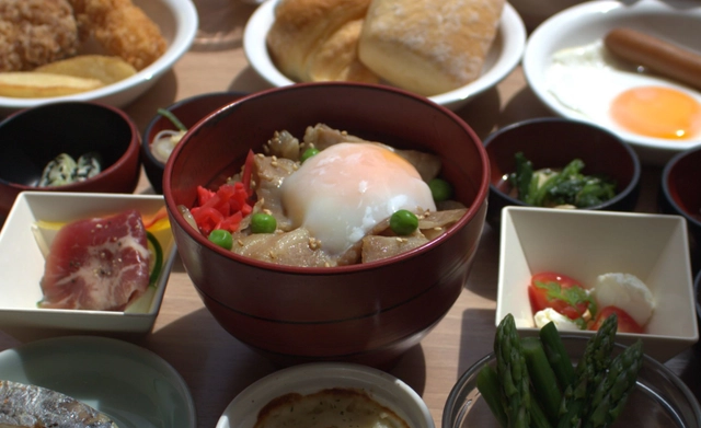 朝食は、全国のドーミーインチェーン共通の和洋セミバイキング、小鉢横丁と出来たての卵料理に加え、地域ごとの特色を出した「ご当地逸品料理」をご提供。当館は、柔らかくてジューシー北海道産「ホエー豚丼」。 温かいものは温かく、冷たいものは冷たく。いつも美味しそうに…。そんな気持ちで準備してお待ちしています。