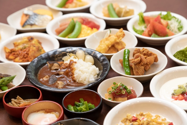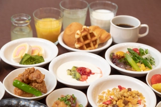 朝食は、全国のドーミーインチェーン共通の和洋バイキング、小鉢横丁と出来たての卵料理に加え、地域ごとの特色を出した「ご当地逸品料理」をご提供。