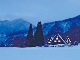 【客室:フォース】窓からは季節ごとに雪景色や新緑の山々と堂々と流れる庄川がご覧いただけます。