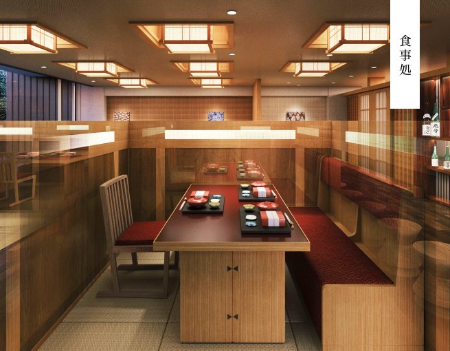 食事処は個室風テーブル席を増席し、