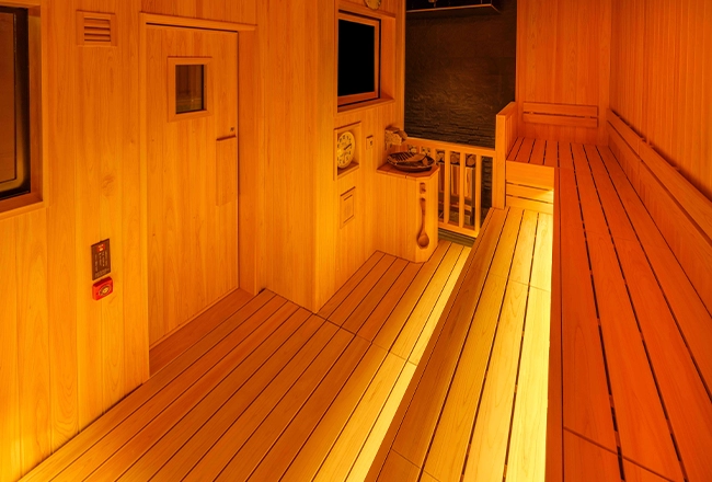 大浴場には壺風呂や打たせ湯など10種類の多様な湯船が並びます。四季の自然と調和する露天風呂では“美肌の湯”とも称される源泉の湯もお愉しみください。