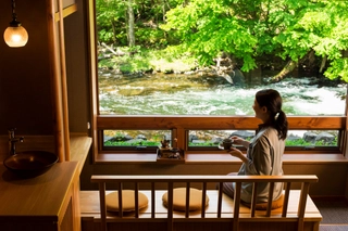 ここは、 ただ 川と温泉があるだけの森。その ただ を何もないと思うか、何よりの贅沢と思うか…。日によって、季節によって、長い年月をかけて、表情を変える川の流れと自然の移ろい。その機微を感じながら、心の赴くまま、過ごすのも一興です。