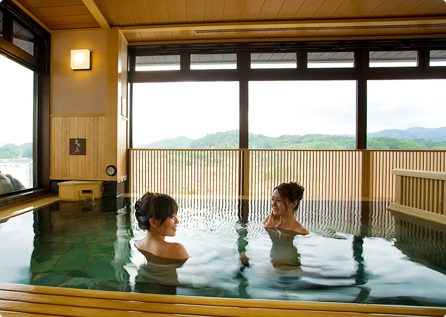 13階に大浴場と露天風呂、3つの貸切風呂をご用意しております。日中は北アルプスの大パノラマ、夜は高山市街の夜景や星空を眺めながらリラックス。