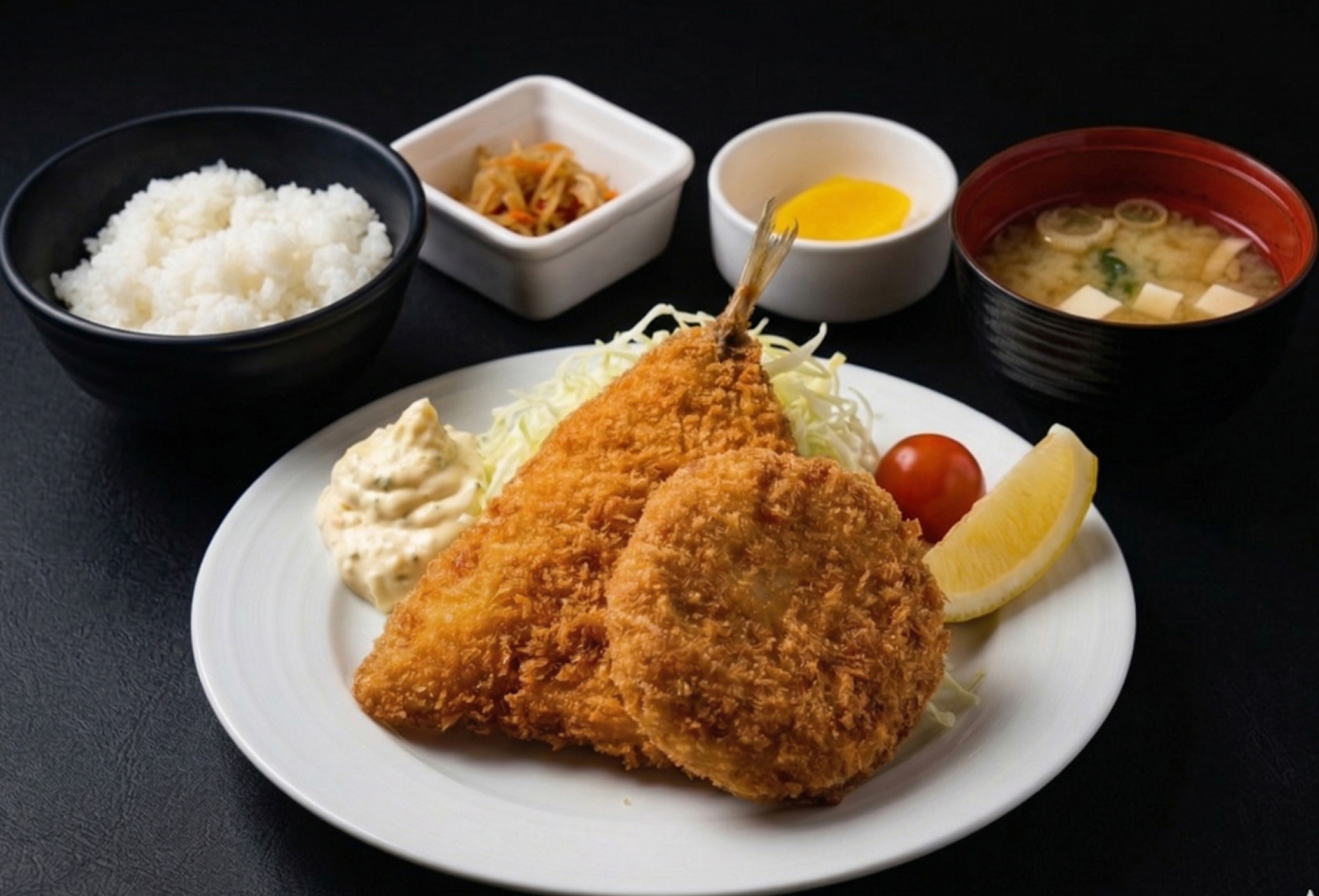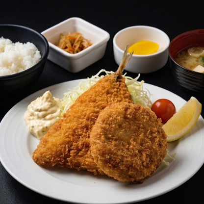 | 新ショウガのメンチカツとアジフライ定食 | 1,050円 |