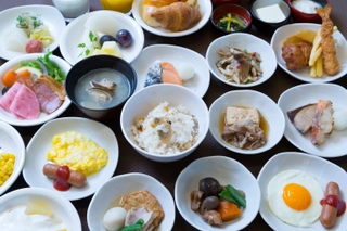 朝食は、全国のドーミーインチェーン共通の和洋セミバイキング、小鉢横丁と出来たての卵料理に加え、地域ごとの特色を出した「ご当地逸品料理」をご提供。