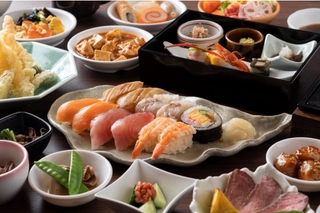 和洋中盛りだくさんのお料理が並びます。郷土料理はもちろん、見た目も楽しい様々なお料理の小鉢もご用意。どのお料理もお好きなだけお召し上がりください。