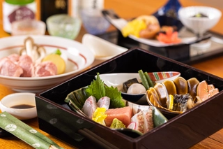 ご夕食は、厳選された食材をふんだんに用いた御膳に加え、揚げたての天ぷらや小鉢などお好きなお料理をお選びいただき、お召し上がりいただけます。