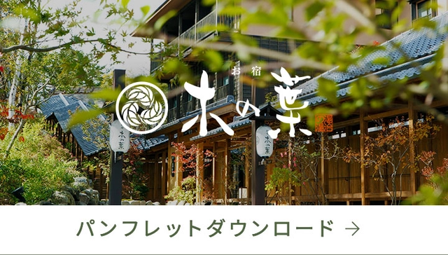 温泉街と緑豊かな自然風景を見下ろす高台に建つ「お宿 木の葉」。同じ敷地に建つ姉妹館「湯宿 季の庭」と湯処を共有しており、二十三種類の湯船で気軽に湯治気分が味わえます。美味しいお料理に舌鼓を打ち、のんびりとお過ごしください。